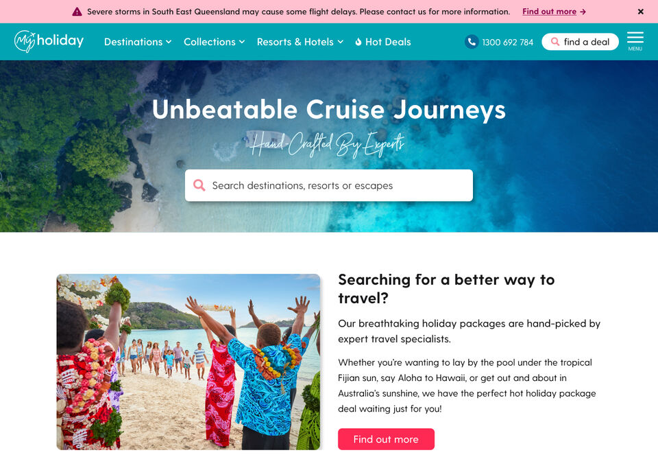 The My Holiday website’s outdated design and conversion strategy relied on print-driven traffic, limiting discoverability and user navigation. Users struggled with a lack of clear pathways, trust signals, and search functionality, leading to poor engagement and high bounce rates. Without dedicated UX expertise, the site’s design favoured business assumptions over best practices, restricting opportunities for optimisation.