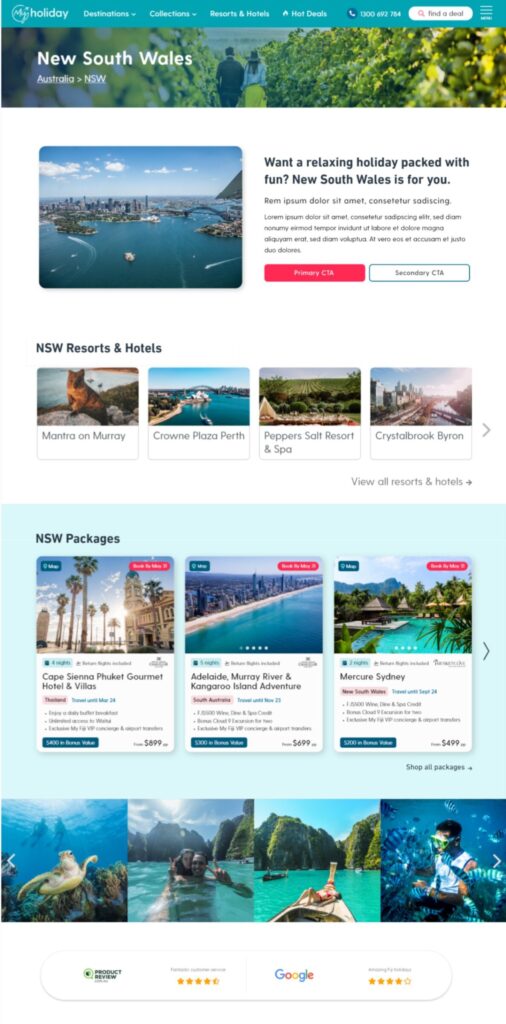 - Analyse the current websites, referred to as our “modular” sites before migrating the My Holiday brand from the old design.