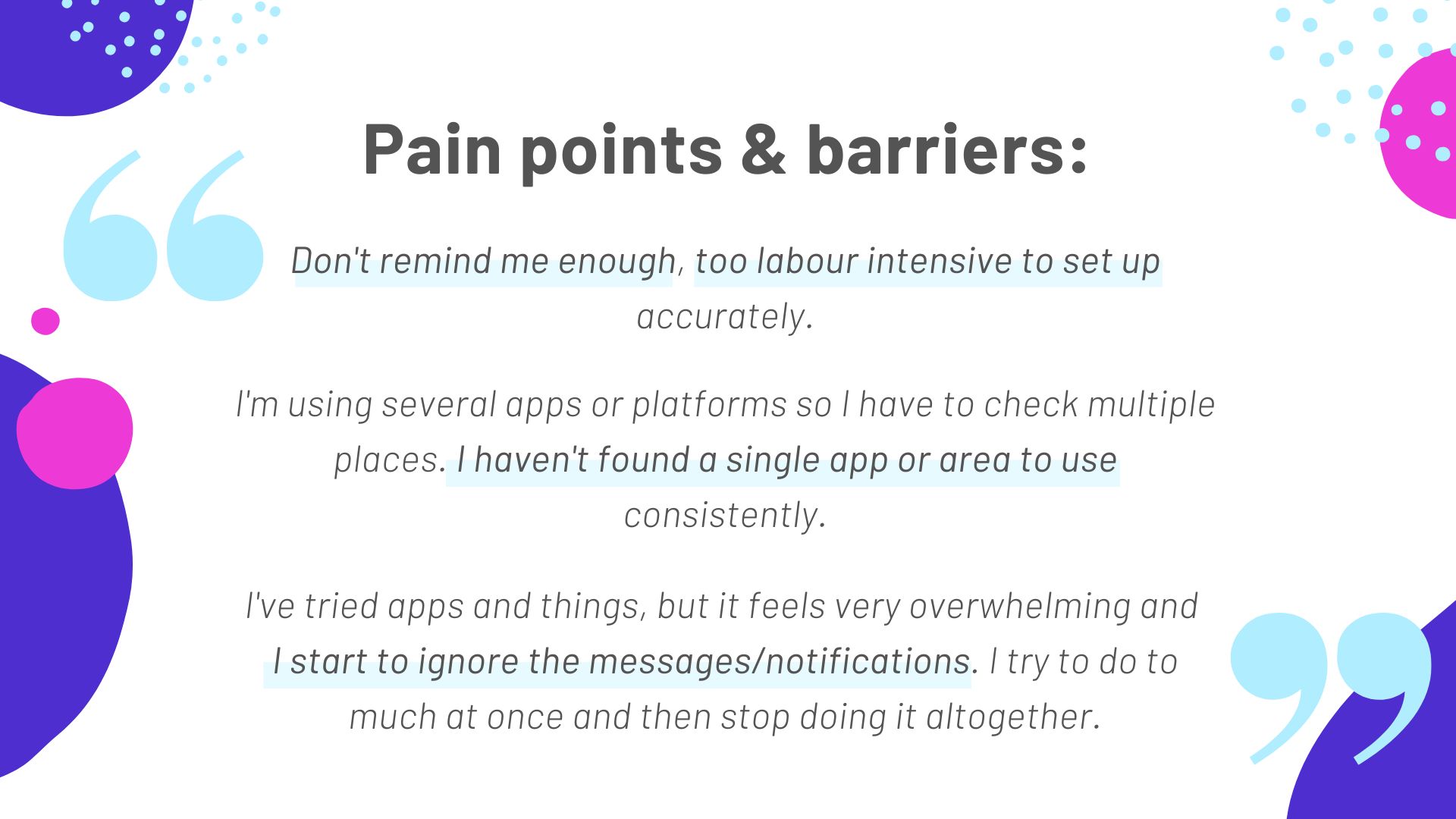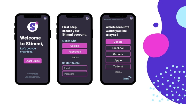 For the post-grad IT course ‘Human Computer Interaction’, we were tasked to conceptualise a mobile app that encourages behaviour change and fills a gap in the market. My team created an organisational app suite specifically designed for the needs of neurodivergent adults. This project involved in-depth research, including interviews and surveys with 81 total participants, user testing and iterative design.